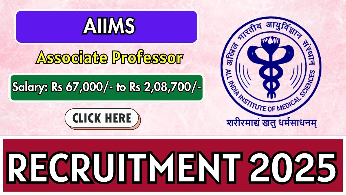 All India Institute Of Medical Sciences (AIIMS)  has released an official notification for the recruitment of 63 Associate Professor Posts. Interested and eligible candidates can apply Online through the official AIIMS website. The last date to submit the application form is 14-11-2025. In this article, you’ll find the AIIMS Associate Professor Posts recruitment details, including eligibility criteria, age limit, salary structure, selection process, application steps, and direct links to the official notification and Online application form.