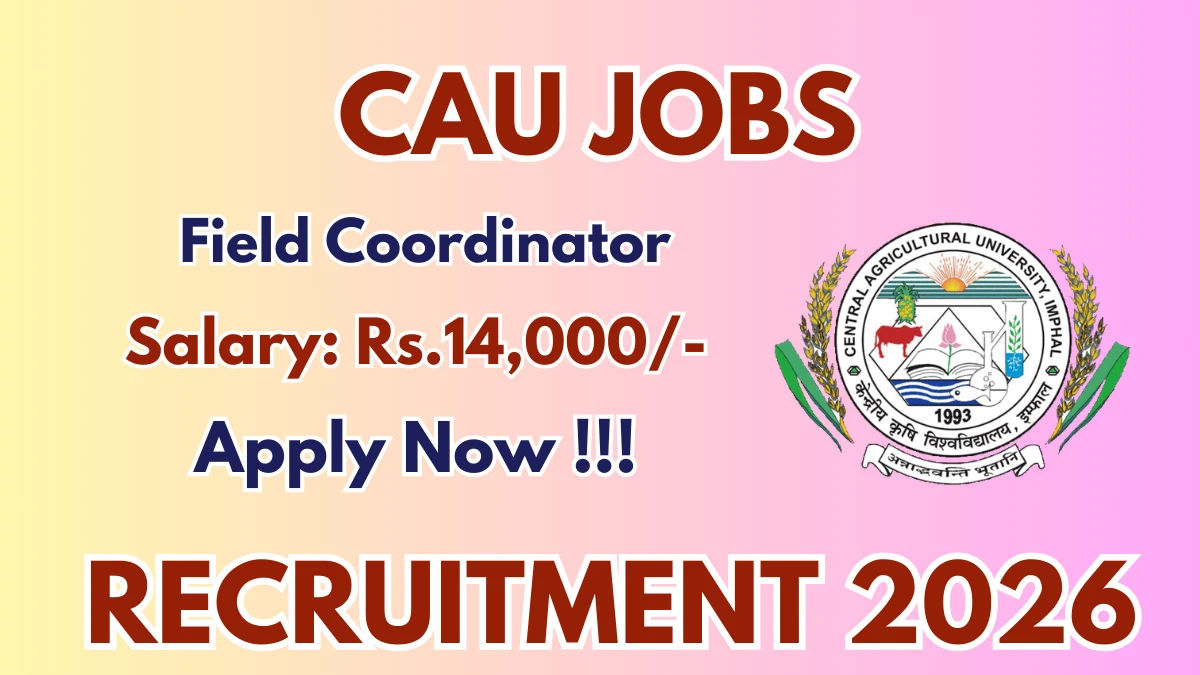 Central Agricultural University (CAU) Recruitment 2026 for 01 posts of Field Coordinator. Candidates with B.Sc, BFSc Can attend the walkin. The Walk-in on 23-02-2026. For detailed information please visit CAU official website, cau.ac.in.