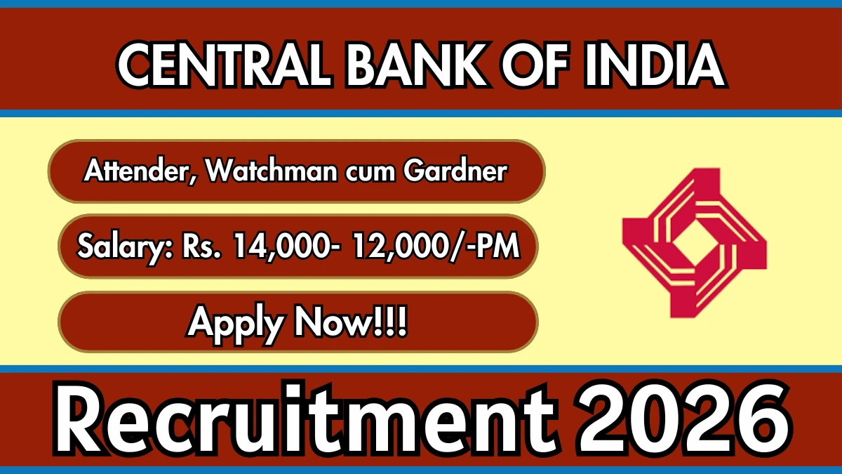 Tags: Central Bank of India Attender, Watchman cum Gardner Recruitment 2026, Central Bank of India Jobs 2026, Central Bank of India Careers, Latest Central Bank of India Jobs, Central Bank of India Notification 2026, Central Bank of India Vacancy 2026, Central Bank of India Offline Form 2026, Central Bank of India Apply Offline