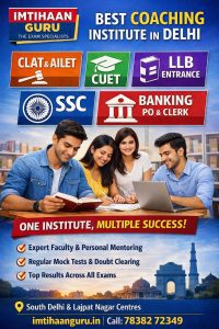 If you are looking for the best coaching institute in Delhi for CLAT, AILET, CUET, LLB, SSC, or Banking exams, Imtihaan Guru offers a complete, result-oriented solution. With expert teaching, personalised mentoring, and consistent results, it continues to be a trusted choice for students across Delhi NCR.