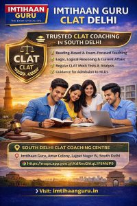 If you are looking for reliable CLAT coaching in Delhi, particularly a trusted CLAT coaching institute in South Delhi, Imtihaan Guru CLAT Delhi offers structured preparation, expert mentoring, and exam-focused teaching. With consistent results and a student-centric approach, it continues to be a preferred choice for serious law aspirants.