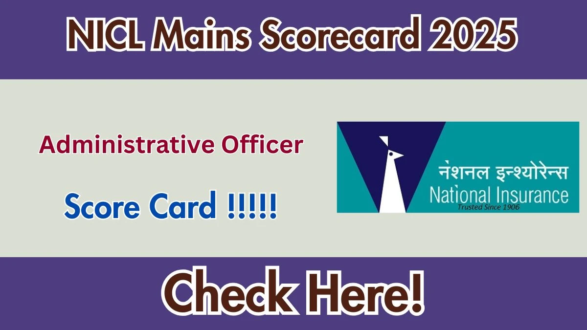 Scorecard Status: National Insurance Company Limited (NICL) will release NICL AO Mains Scorecard 2025 soon at the official portal nationalinsurance.nic.co.in. Candidates who appeared in the Mains examination can check their section-wise marks and total score using Registration No/Roll No & Password/DOB once released. Read below for expected release date, how to download, and selection process details.