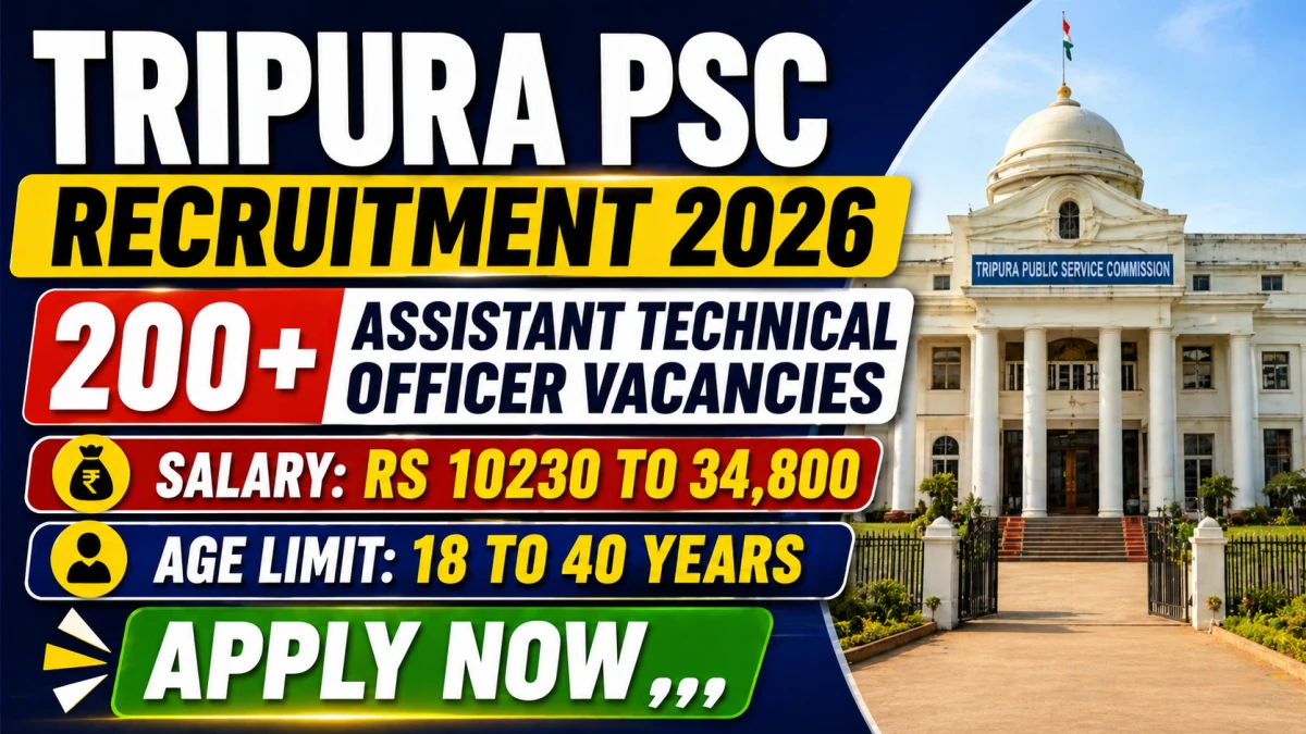 Tripura PSC Assistant Technical Officer Recruitment 2026: Get the latest TPSC recruitment notification 2026 for 220 Assistant Technical Officer (ATO) vacancies under the Directorate of Information Technology, Govt. of Tripura. The online application process starts on 12th May 2026 and the last date to apply online is 5th June 2026. Find TPSC vacancies across Tripura on the official website tpsc.tripura.gov.in. You can also get Free Job Alert of “Upcoming TPSC Assistant Technical Officer Recruitment 2026” notifications for freshers and experienced candidates. Also know the direct official link for TPSC ATO Recruitment 2026 apply online from the TPSC career page.